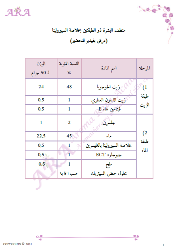 هذا تركيبة لمنظف طبيعي لطيف على الوجه وهي أحد وحدات الدورة التأسيسية لتركيب المستحضرات الطبيعية للعناية بالبشرة التي تقدمها أكاديمية آروما روزا، حيث ندمج العلم مع التطبيق العملي بأسلوب واضح وممنهج.